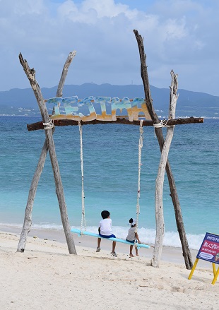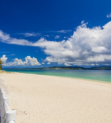 澄みきった青い海と碧空、広がる白砂の浜、ゆっくり流れる島の時間